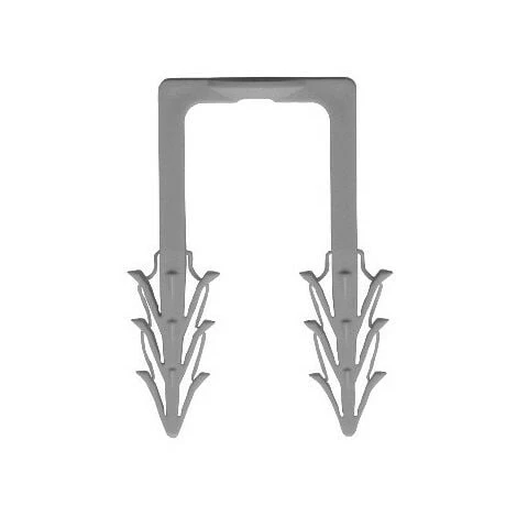Grâce à son “ancre” brevetée, cette agrafe rentre très facilement dans l’isolant polyester ou polyuréthane tout en ayant une très forte résistance à l’arrachement.