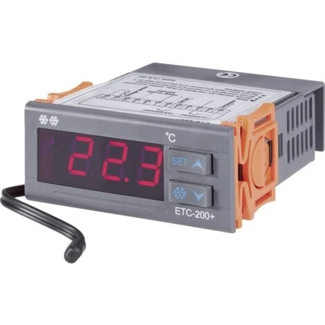 Les thermostats 100+ et ETC-200+ se distinguent par leur simplicité d’utilisation et leur niveau de fiabilité. Le modèle ETC- 100+ est spécialement conçu pour les applications de réfrigération (le relais s’allume dès que la température mesurée est plus élevée que la limite supérieure de température). L’ETC -200+ est convient pour les applications de chauffage et de réfigération et est équipé de 2 sorties relais. En mode réfrigération, les modèles ETC-100+ et ETC-200+ disposent d’un retard à l’enclenchement compris entre 0 et 30 et réglable selon vos besoins. En outre, un signal sonore retentit si la connexion du capteur est défectueuse ou si la température est en dehors de la plage de température autorisée (-40 à +120 °C). En mode réfrigération, l’ ETC-200+ dispose également d’une fonction de dégivrage automatique.