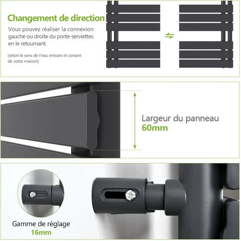 S’AFIELINA Sèche-serviettes eau chaude Radiateur eau chaude en acier Anthracite