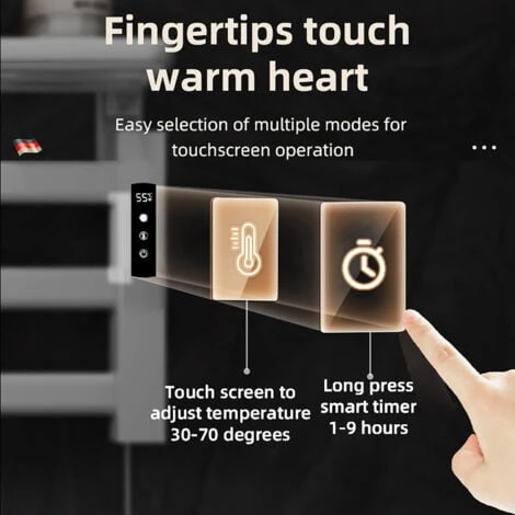 - ★ Porte-serviettes avec minuterie : le chauffe-serviettes est doté d’une minuterie intégrée et d’indicateurs visuels à LED. Appuyez sur le bouton de la minuterie et vous êtes libre de le chronométrer de 1 à 9 heures et le radiateur restera allumé assez longtemps pour chauffer la serviette avant de s’éteindre. Il vous offre une expérience de réchauffement ou de séchage agréable et confortable, en particulier pendant les mois les plus froids.