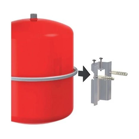 • La MB2 est pourvue d’une encoche dans laquelle vient s’engager le cerclage du vase d’expansion, le vissage des 2 vis permet le serrage du vase dans la plaque de montage (livré avec chevilles et vis)
