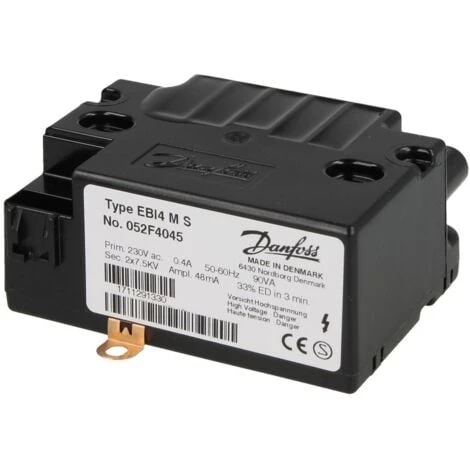 Brûleur gaz/fioul 2 pôles 33% ED à 60°C Raccord secondaire latéral, fiche 2 x 4 mm, 2 x 7,5 Kv, 40 mA 230 V, 0,5 A N° de fabricant : 052F4045 Contenu de livraison – Câble de raccordement de masse universel – Vis
