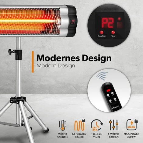 Ce puissant radiateur télescopique avec télécommande dispose de 3 niveaux de puissance intégrés (850, 1650, 2500W) et d’un procédé Instand-Heat qui permet de chauffer en quelques secondes. La chaleur ciblée grâce à l’effet réflecteur, assure un développement de chaleur orienté dans toutes les directions.