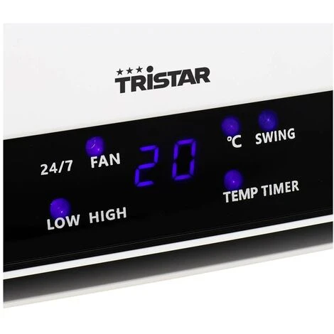Le Tristar KA-5075 est le ventilateur de chauffage en céramique parfait pour votre maison. L’appareil de chauffage peut être fixé au mur et ne nécessite donc pas de place au sol. Grâce à une puissance de 2000 W, votre pièce devient chaude. Le ventilateur de chauffage dispose de deux modes de fonctionnement différents. Sur l’écran LED, tout est facile à lire. La télécommande fournie offre un confort supplémentaire car vous n’avez plus besoin de vous lever pour régler les réglages du ventilateur de chauffage. Comme le ventilateur de chauffage électrique oscille, l’air est réparti uniformément dans la pièce. Ce texte a été traduit par une machine.