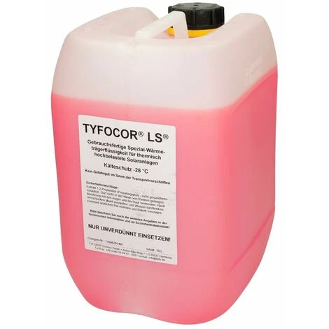 Indication:Le TYFOCOR® LS peut être mélangé à tout moment avec le liquide caloporteur OEG RK 516001505. Cela ne modifie pas les propriétés du fluide caloporteur.Le TYFOCOR® LS est un liquide caloporteur spécial prêt à l’emploi et résistant à la vaporisation à base de propylène glycol pour les installations solaires fortement sollicitées thermiquement, par exemple dans les capteurs à tubes sous vide.Il assure une protection antigel jusqu’à -28 °C.Pour conserver ses propriétés particulières, le liquide ne doit pas être dilué avec de l’eau. Le mélange, nommant conçu pour les capteurs à tubes sous vide, est prêt à l’emploi et peut être drainé sans laisser de résidus.