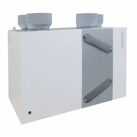 VMC double flux haut rendement DuoCosy HR Atlantic 412191 BÉNÉFICESÉconomies d?énergie renforcées :- échangeur haut rendement 92%- moteurs basse consommationEntretien simplifié :- installation en volume chauffé- accès aux filtres sans outilsSystème VMC double flux haut rendement pour maisons du T3 (1 salle de bains, 1 WC) au T5 et + (2 salles de bains, 2 WC)Jusqu?à 92% de rendement pour une installation en volume chaufféIdéal en neuf : dimensions compactes, accès aux filtres directement en façade avec voyant d?alerte lorsque ils sont à remplacerActivation du grand débit cuisine par bouton poussoirCONSTRUCTIONCaisson extérieur en tôle peinteIntérieur en PSE avec mousse polyuréthane isolante et acoustiqueEchangeur haut rendement à contre-courantMoteurs à courant continu, basse consommationRégulation à pression constante avec capteur intégréDégivrage automatique de l?échangeur4 piquages Ø160 😕 1 piquage pour la prise d?air neuf? 1 piquage pour le rejet? 1 piquage pour le soufflage air neuf? 1 piquage pour l?air extraitFiltres M5.By-pass partiel automatique de série1 bouton poussoir pour le grand débit cuisinePuissance électrique : Duocosy HR : de 35 à 55 W-Th-CAlimentation électrique : mono 230 V ? 50 HzPoids : 30 kg