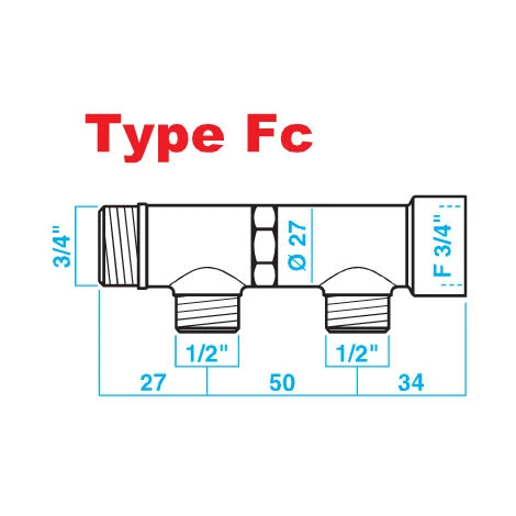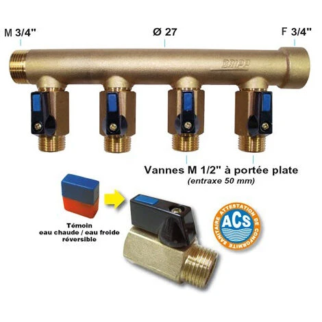 Départ Mâle 1/2 – Ø passage 9mm. Entraxe 50mm