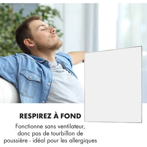 Grâce à un thermostat et à des fonctions bien pensées comme la fonction d’arrêt automatique et le site OpenWindow Detection, le radiateur infrarouge répond aux souhaits les plus exigeants. Une minuterie hebdomadaire permet de programmer les heures de chauffage pour chaque jour de la semaine. Sans ventilateur ni soulever aucune poussière, le radiateur le choix idéal pour les personnes allergiques, il est en outre silencieux et convient également très bien pour la salle de bains.